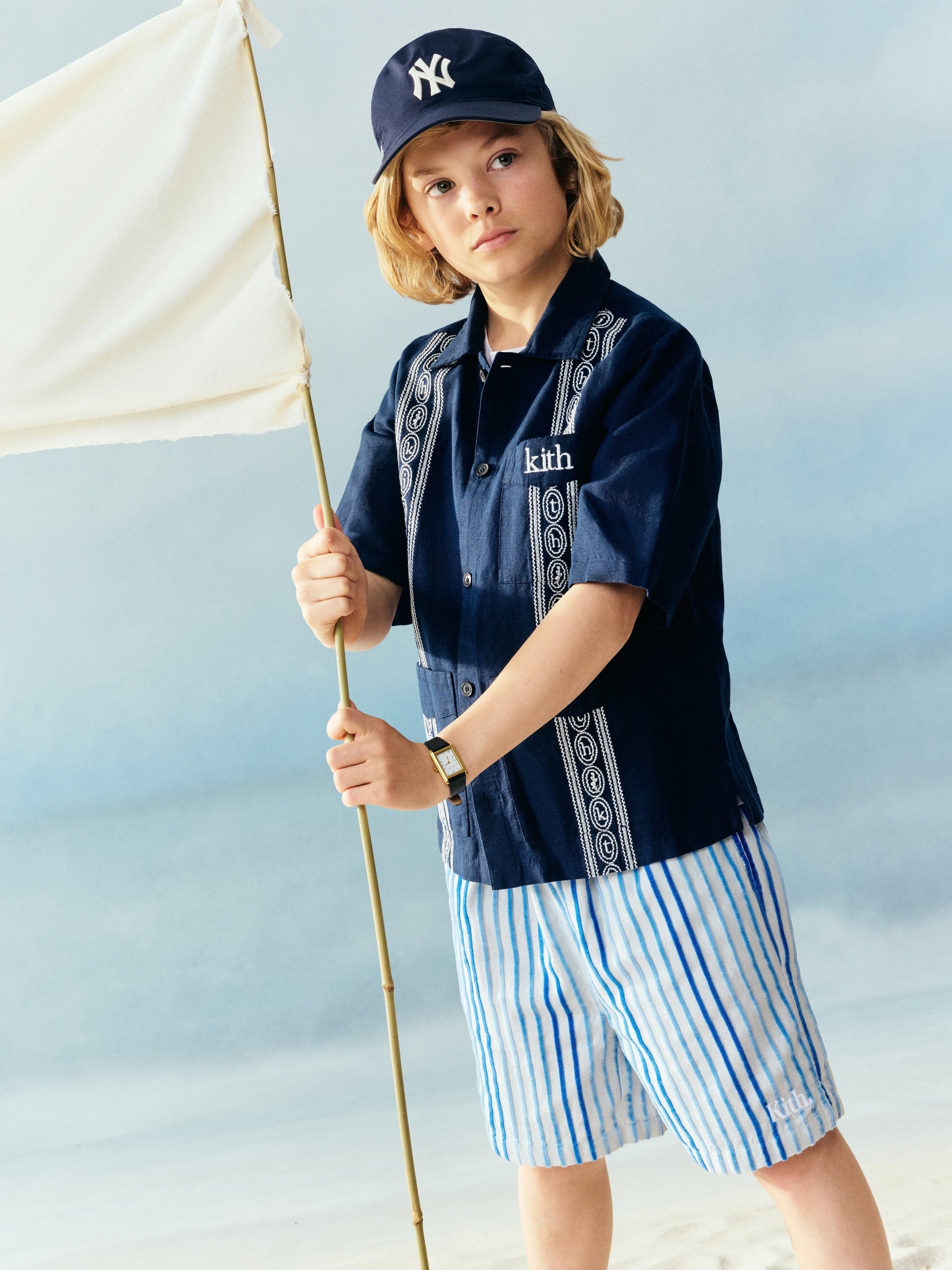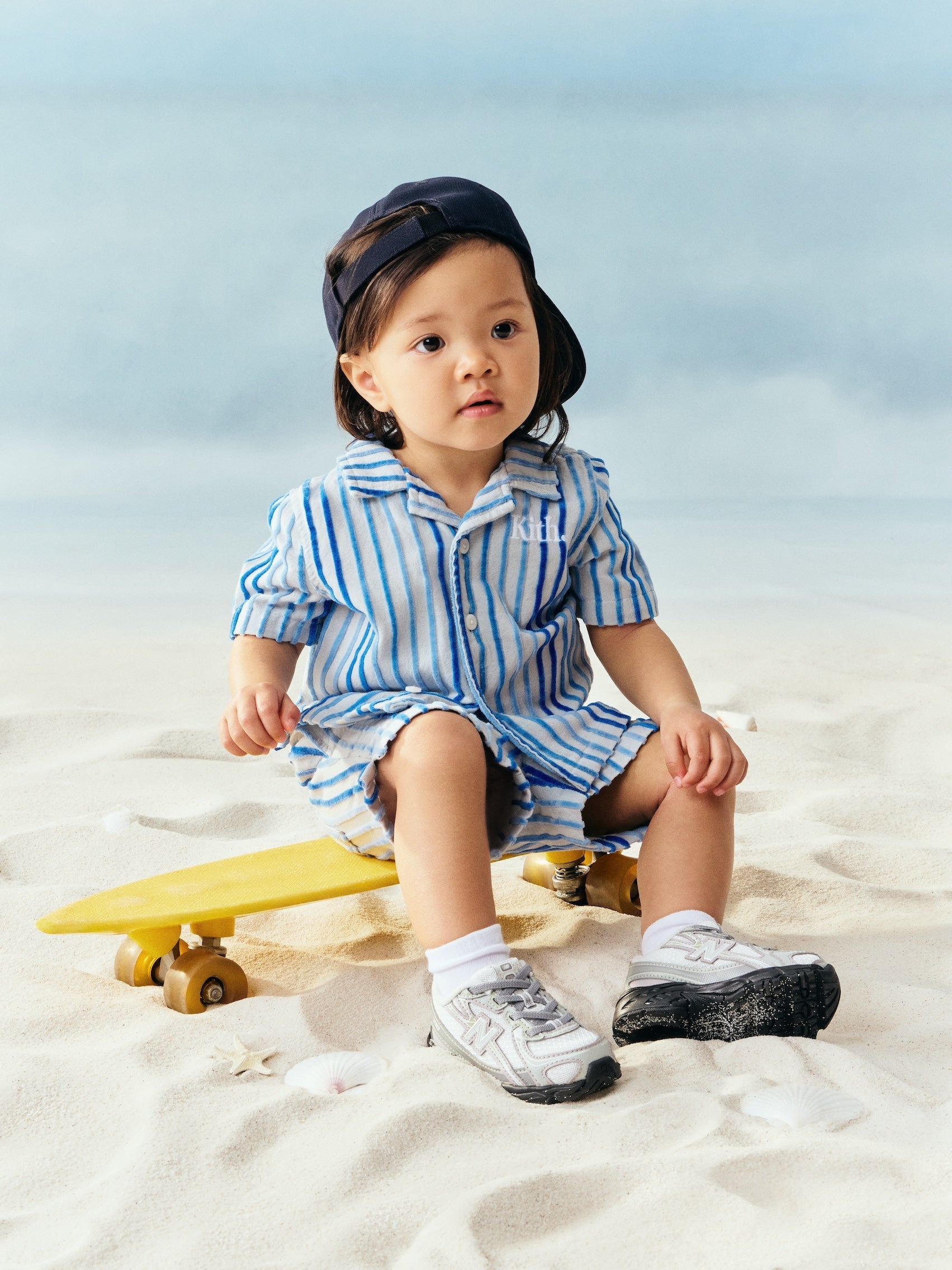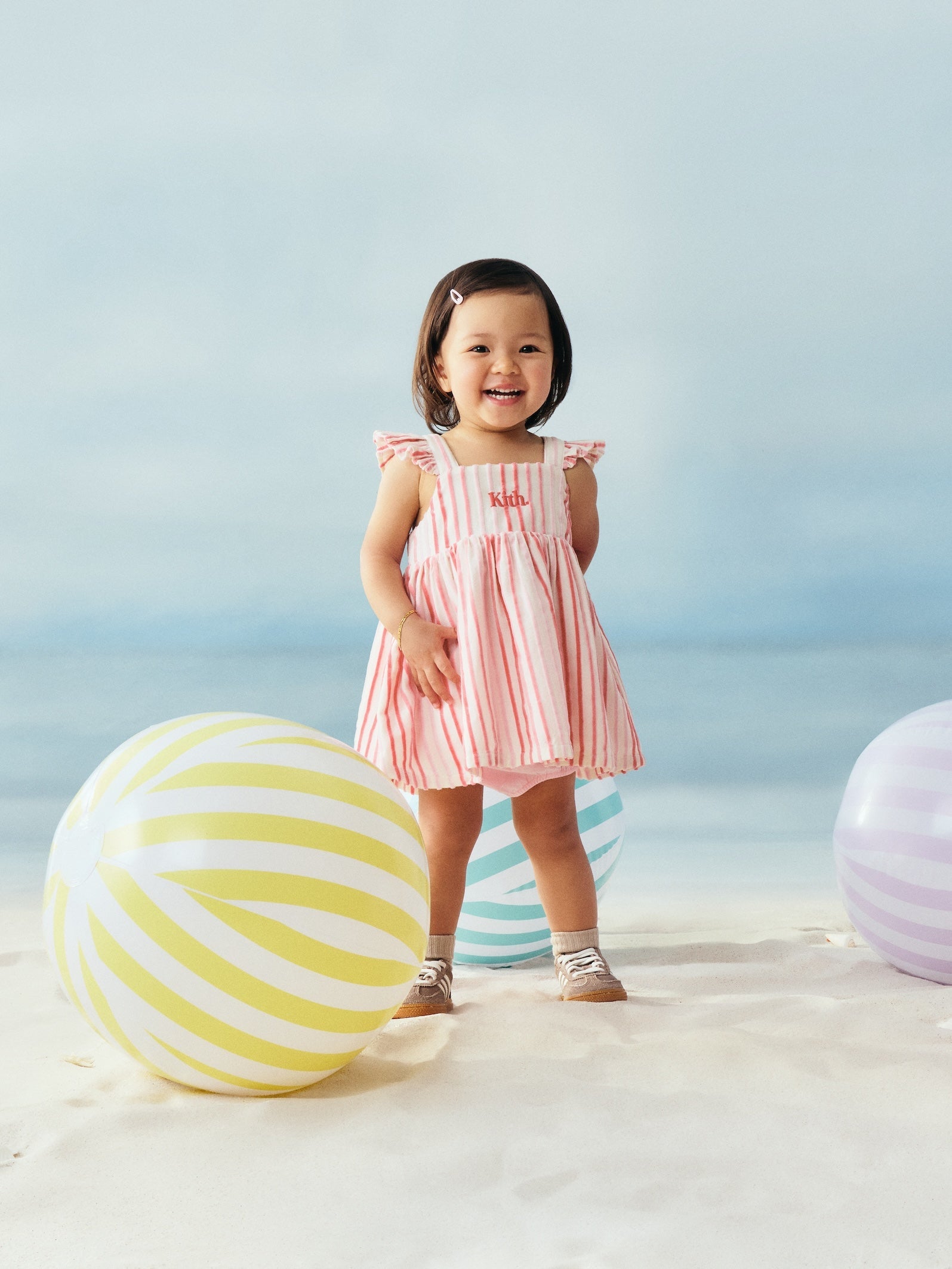 夏の特別なシーンに向けた、より洗練されたピースもラインナップ。通気性の良いコットンポプリンに全面グラフィックを施したKamora Novelty Mini Dressや、ショーツ一体型のKaia Skortが登場します。さらに、Kith BabyからはAmina Mini Dressとブルマのセットや、全面に刺繍をあしらったPeyton Novelty Mini Dressなど、この夏のキーアイテムが揃います。