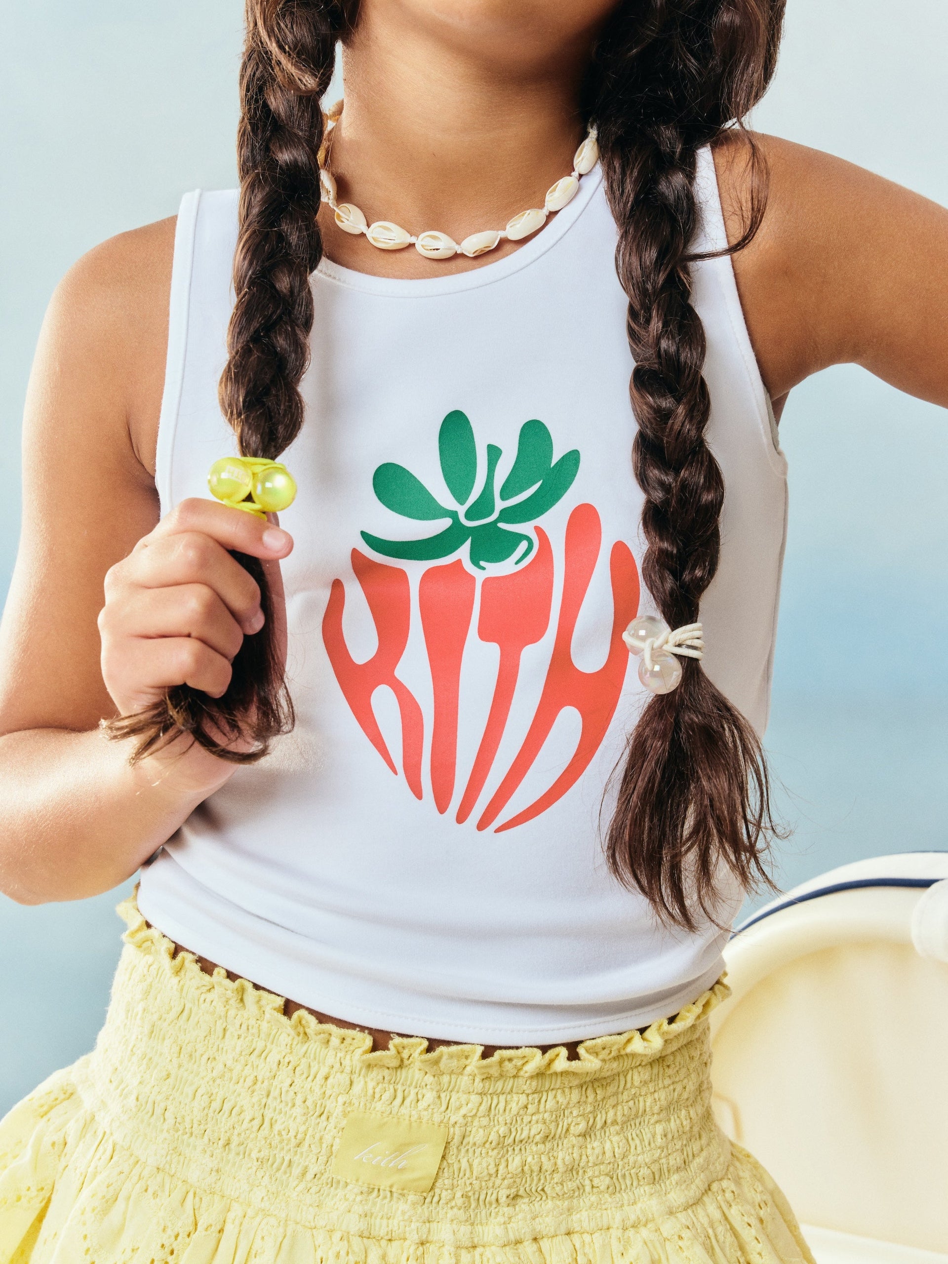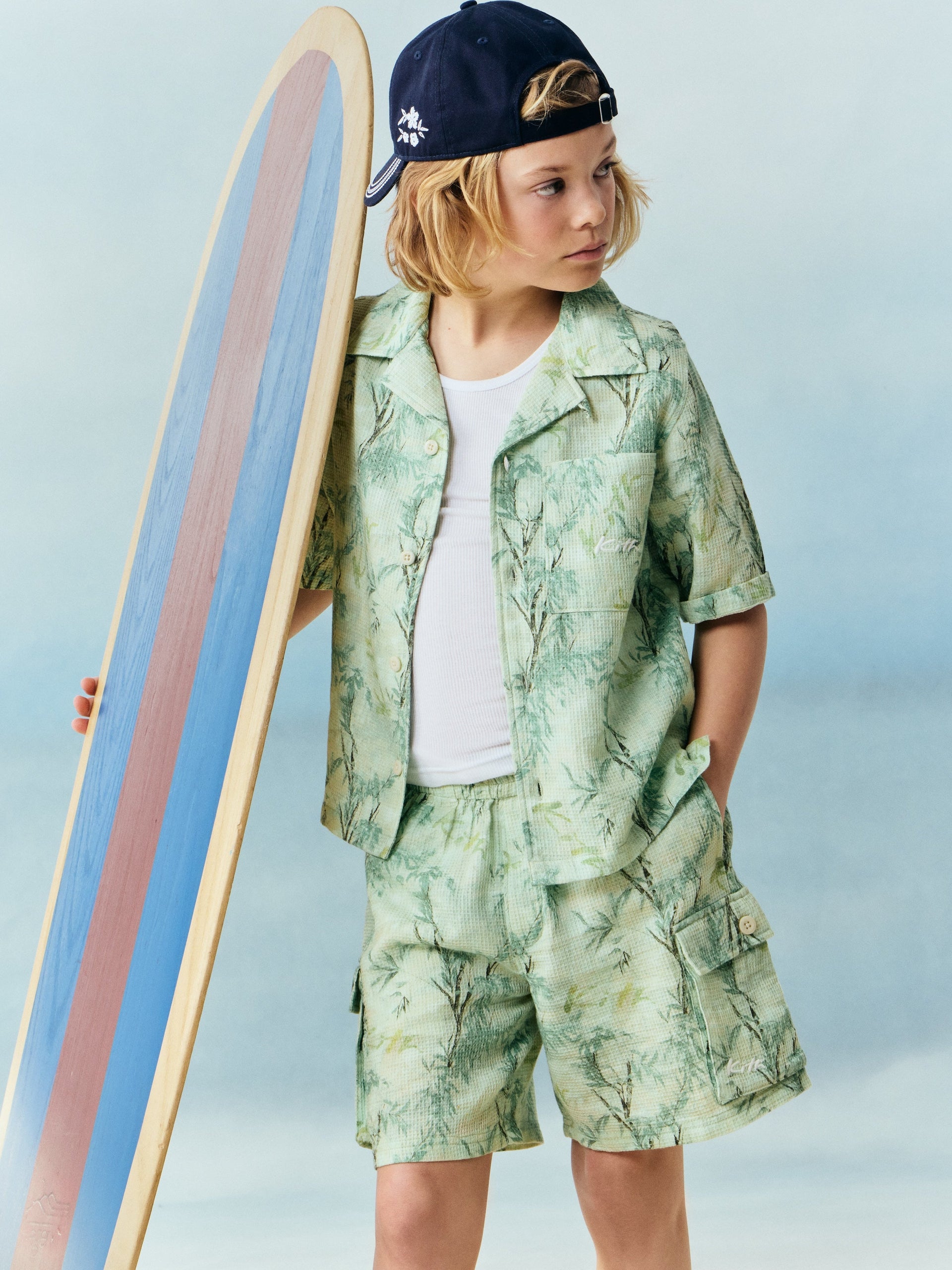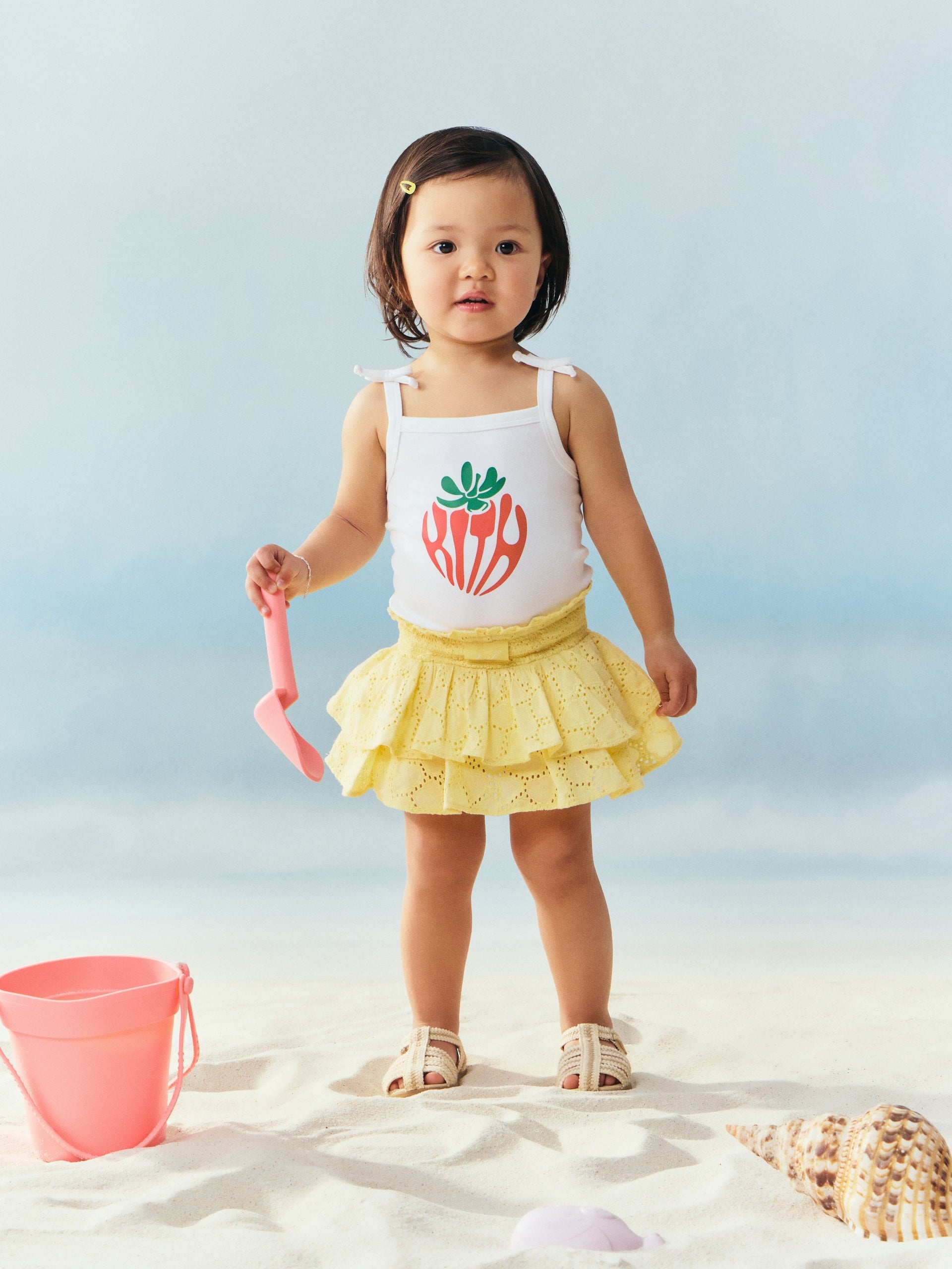 夏の特別なシーンに向けた、より洗練されたピースもラインナップ。通気性の良いコットンポプリンに全面グラフィックを施したKamora Novelty Mini Dressや、ショーツ一体型のKaia Skortが登場します。さらに、Kith BabyからはAmina Mini Dressとブルマのセットや、全面に刺繍をあしらったPeyton Novelty Mini Dressなど、この夏のキーアイテムが揃います。