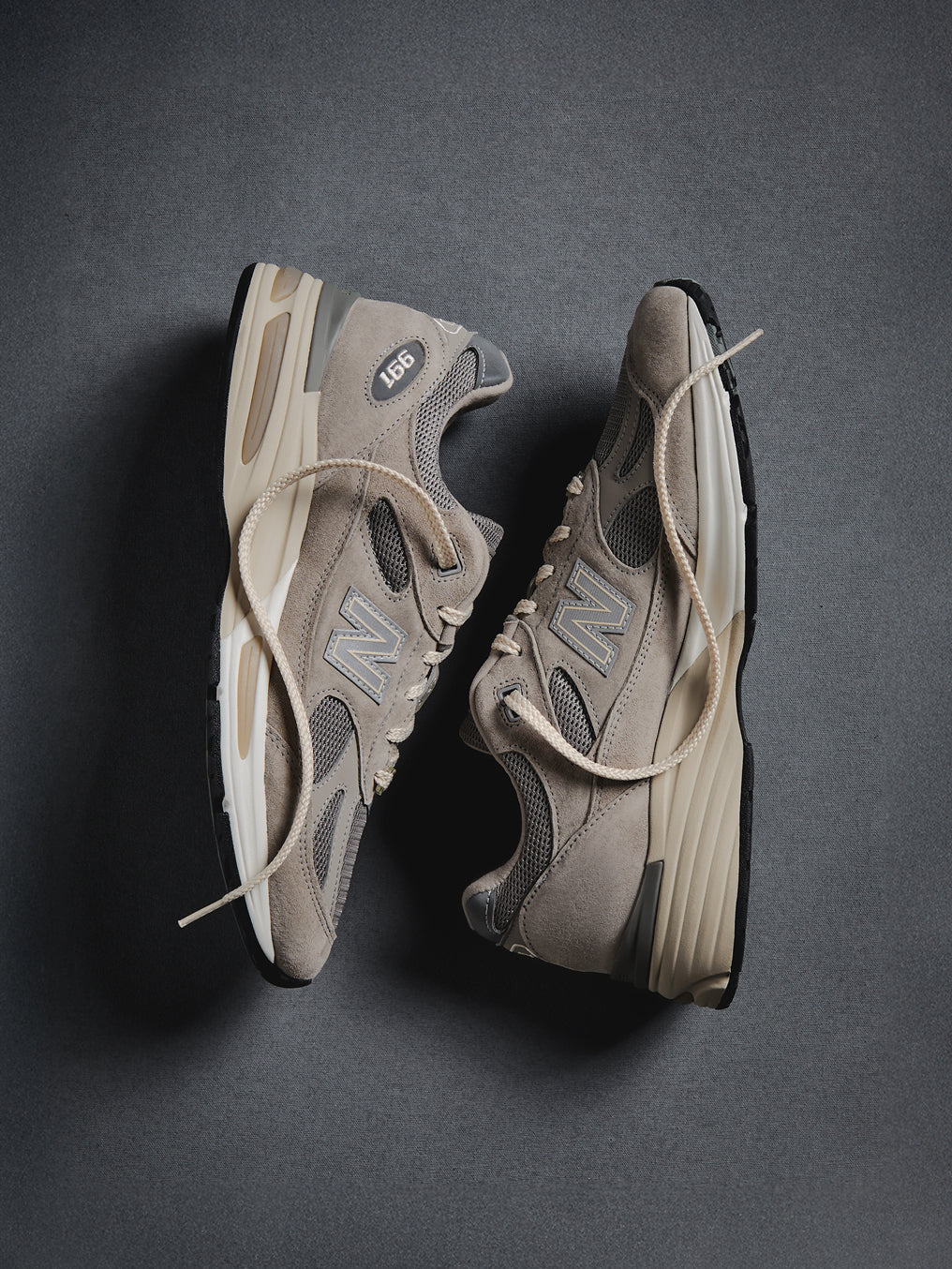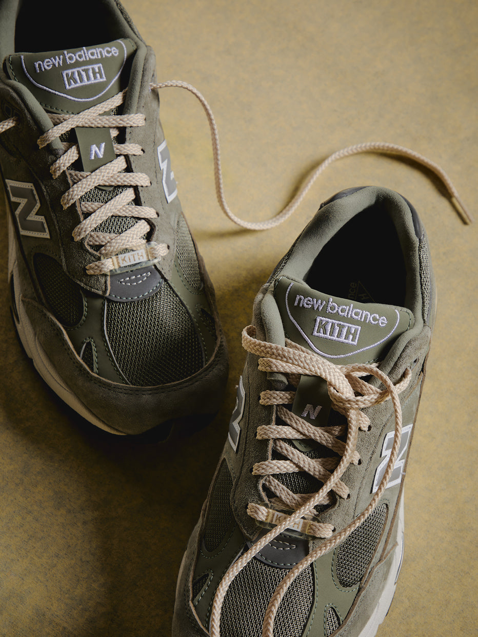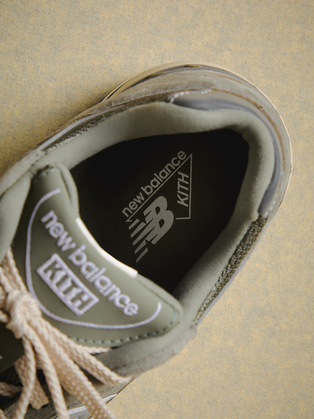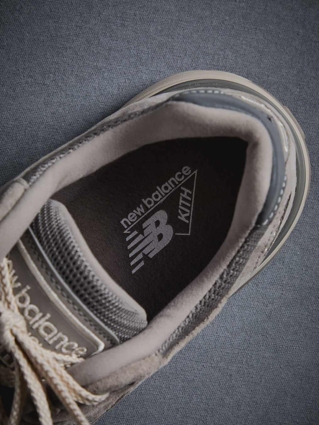 New Balanceの「Made in UK」プログラムは、細部までこだわったクラフトマンシップ、上質な素材使い、そして時代を超えるデザインで高く評価されています。今回のKith 101 & New Balanceコレクションの両モデルには、耐久性の高いピッグスキンスエードを使用し、メッシュアンダーレイ、リフレクティブアクセント、フラットウーブンレースを採用。さらに、追加の替え紐も付属します。991v1はメンズ・ウィメンズ両サイズで展開し、ヒール、タン、フットベッドにKithのブランディングを配し、カスタムのKithダブレ(シューレース下部のプレート)も備えています。一方の991v2には、アンクルの外側、タン、フットベッドにKithブランディングが施されています。また、両モデルはソールユニットにも違いがあり、991v1はミッドソールにABZORBポッドを搭載。991v2はABZORBポッドに加え、FuelCellクッショニングを採用しており、高いエネルギーリターンと優れた快適性を実現しています。