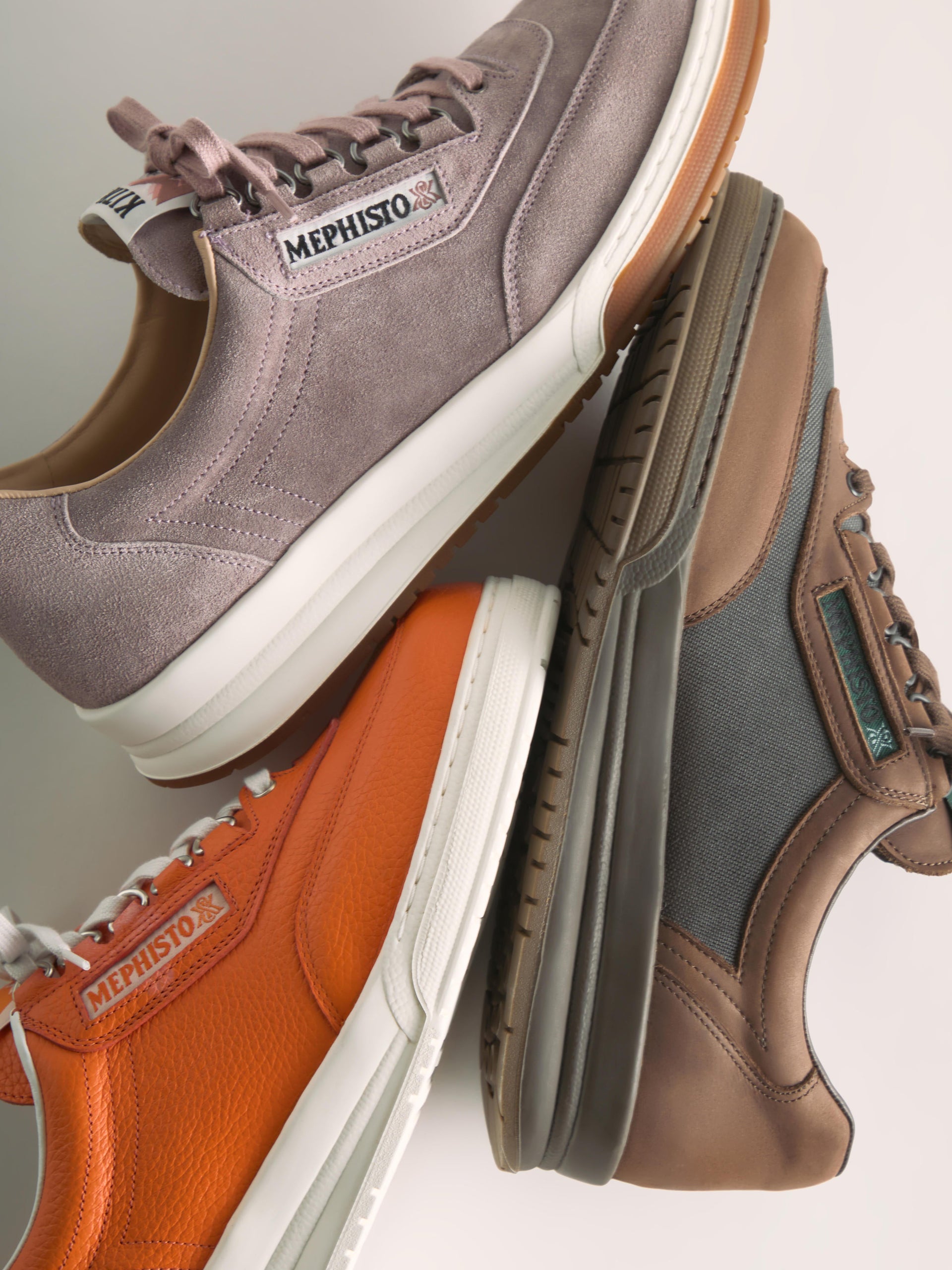1965年に創業したMephistoは、「世界最高の靴をつくる」という理念のもと誕生しました。この思想はKithとも共鳴するものです。創業以来60年以上にわたり、フランスの自社工場にて熟練職人の手によって生産を続け、ペブルドレザー、スエード、シンセティックキャンバスといった耐久性に優れた素材を用いて、タイムレスなシルエットを生み出してきました。
