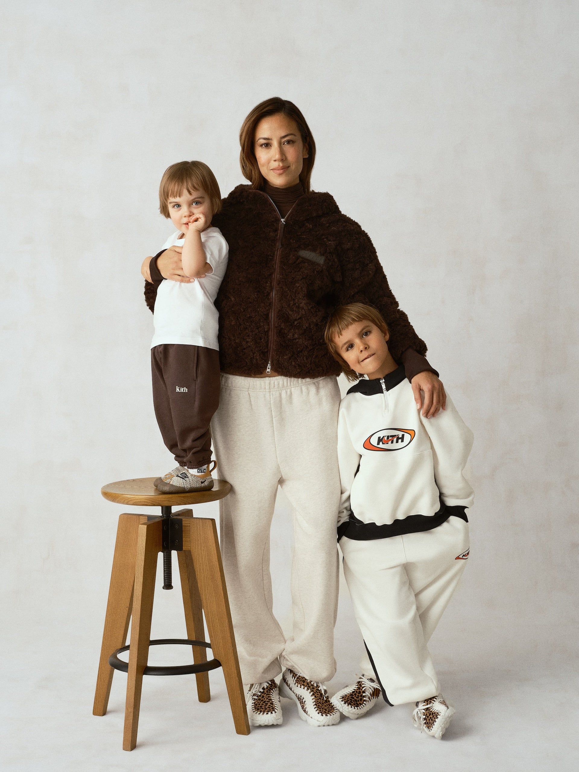 Lastly from the sneaker collection, Kith Baby and Nike present three colorways of the Swoosh One, exclusively in Crib sizing. Made of Nike’s iconic Flyknit, the Swoosh One in Black, Coconut, and Maroon all have an adjustable velcro strap for easy on and off, a Just Us-branded heel pull, and embroidered Kith and Nike Swoosh artwork on the vamp. They are packaged in an all-over Kith Monogrammed box, ideal for giving during the holiday season.