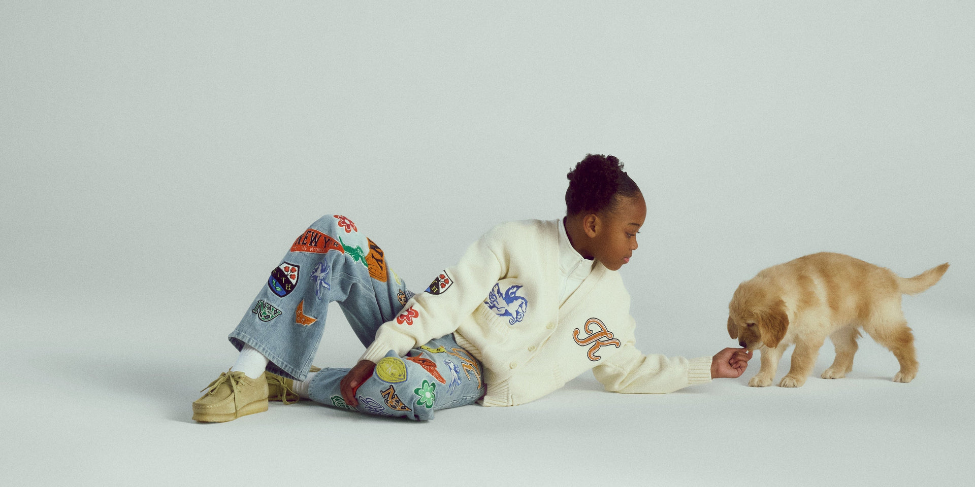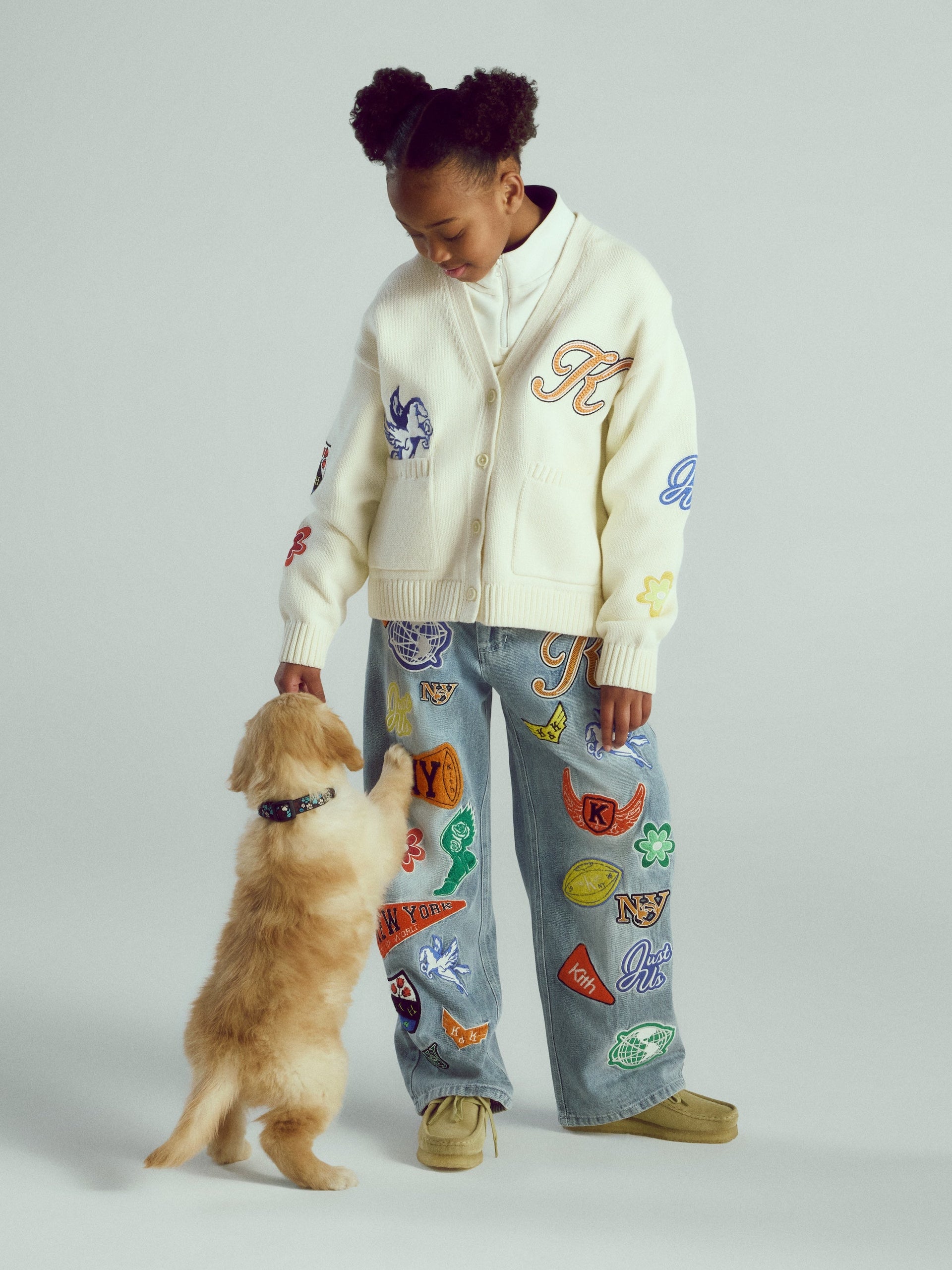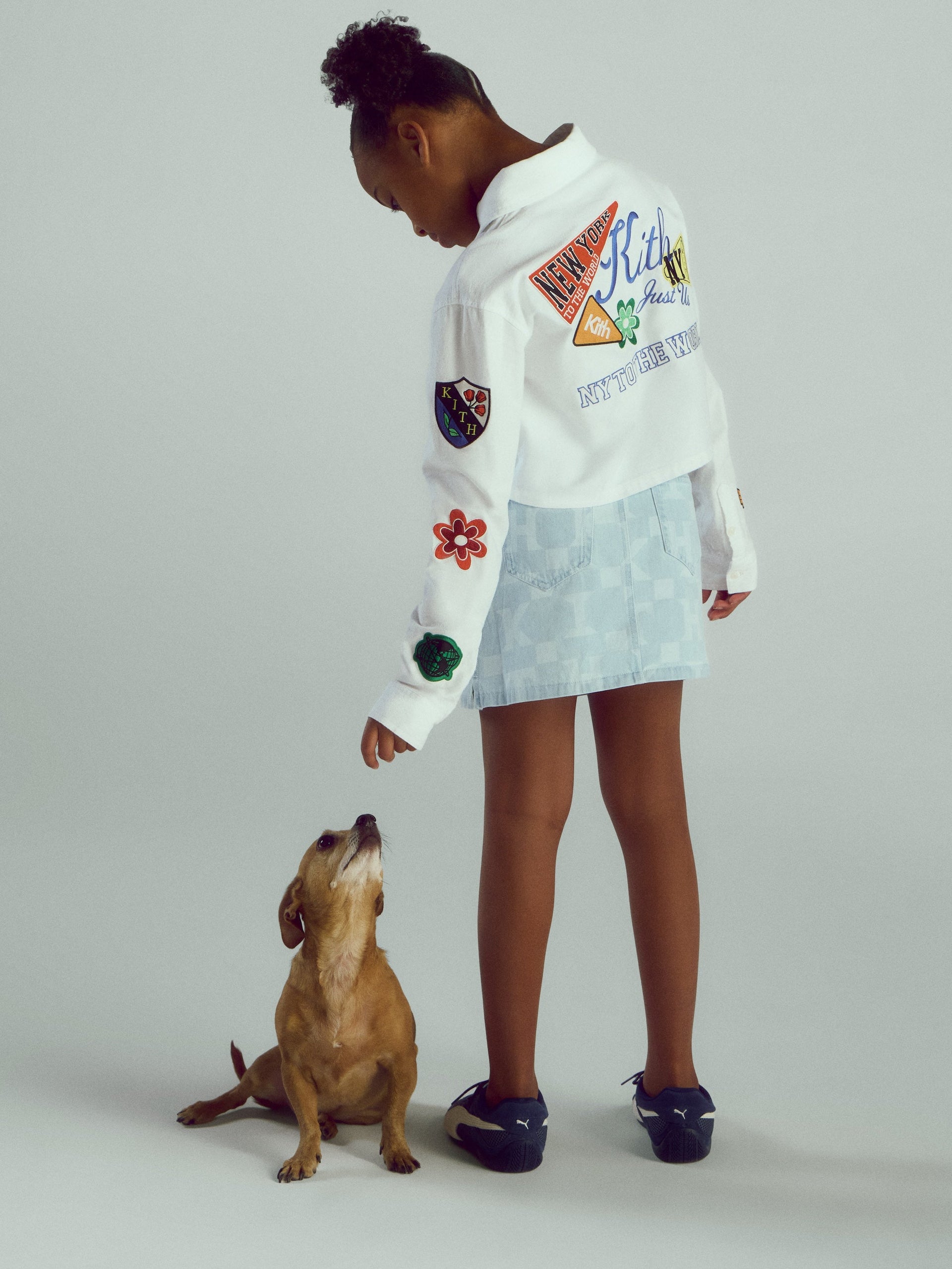 Kith Kids Spring 2026 showcases an expanded assortment into denim, highlighted by new silhouettes like the Heston Wide Leg Jean, the matching Denim Bomber Jacket & Monogram Denim Skirt with Kith branding throughout, and the matching Milo Jacket & Track Pant, blending function with form. Additionally, standout outerwear ideal for lightweight layering is demonstrated on the NY to the World Varsity Jacket, a style seen in past Kith collections as a takedown now in kids’ sizing, and vintage-inspired chenille embroidered artwork on a vast array of silhouettes from this season, including the NY to the World Cardigan, Cropped Apollo Shirt, and Novelty Leon Jersey.