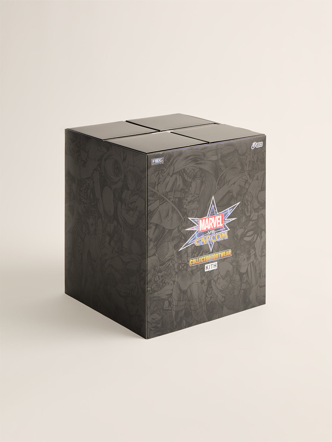 The first double-box of two styles sold only as a set is inspired by Marvel’s Captain America and Capcom’s Guile in the GEL-KAYANO® 12.1 silhouette, featuring colors inspired by each character, complete with an open mesh upper, synthetic overlays, and Kith branding on the tongue and footbed. The Guile silhouette has an Olive hue on the upper and camo-printed textile lining, contrasting Captain America’s deep Navy, Red, and Silver. Each includes classic GEL-KAYANO® 12.1 tooling, such as a GEL-NIMBUS® 17 midsole, dual GEL® technology inserts, and a FLUIDRIDE™ cushioning structure. Each double box will receive a special custom Marvel vs. Capcom | Kith Comic Book one-shot as a gift with purchase, including different variant covers that range in rarity and with PSA Graded potential. The one-shot comic is written by Paul Allor and drawn by Ron Lim, with the main cover drawn by Michael Shelfer and additional “Match-Up” variant covers by Todd Nauck. from each franchise.