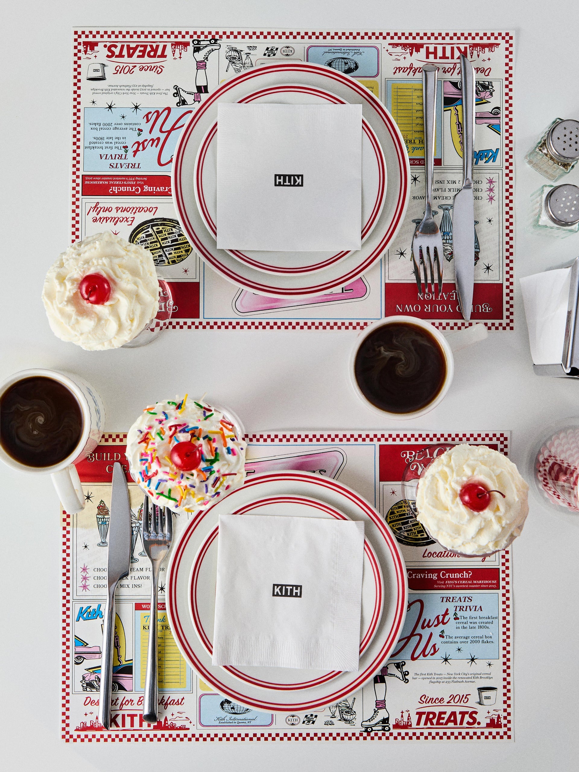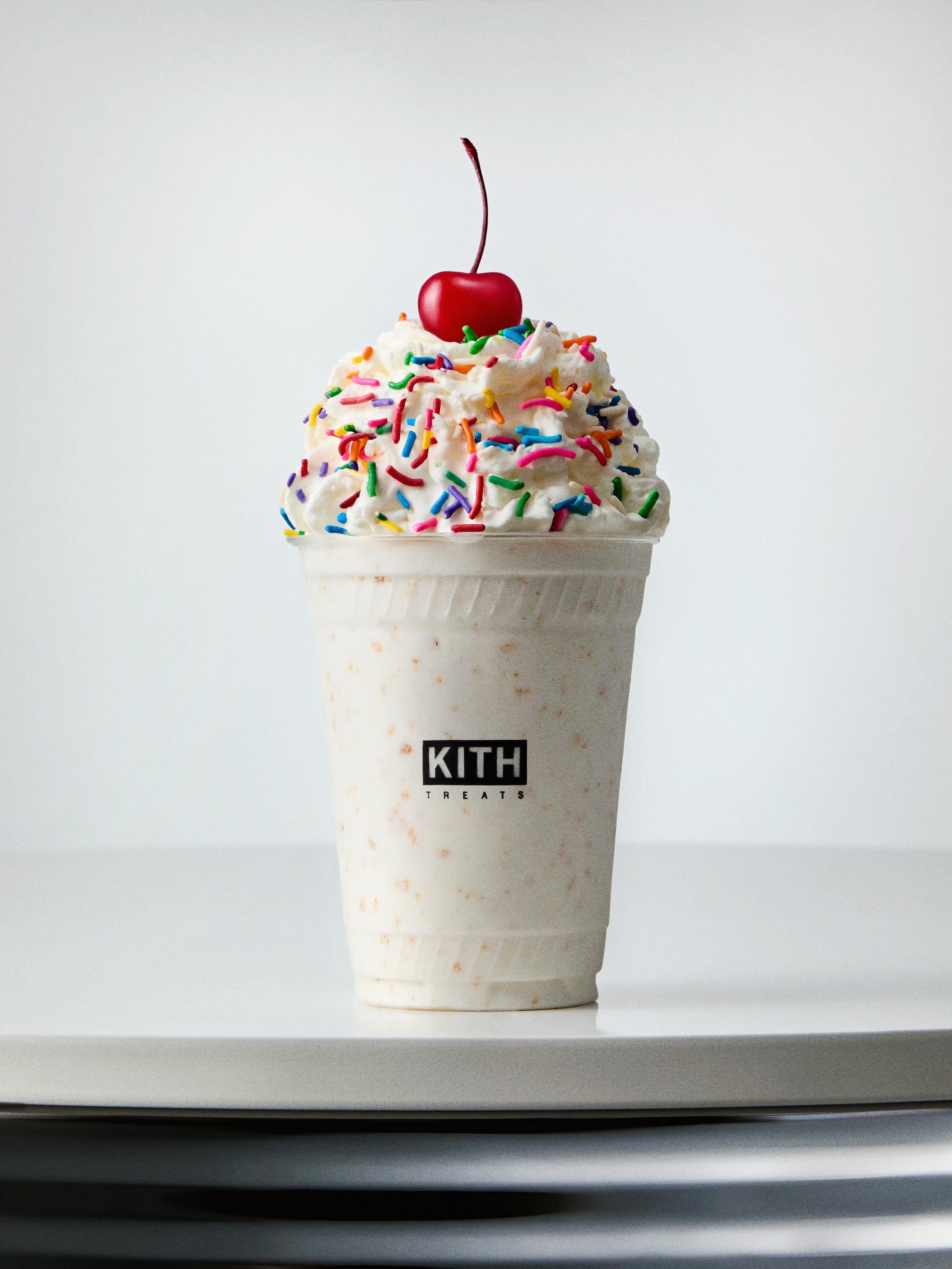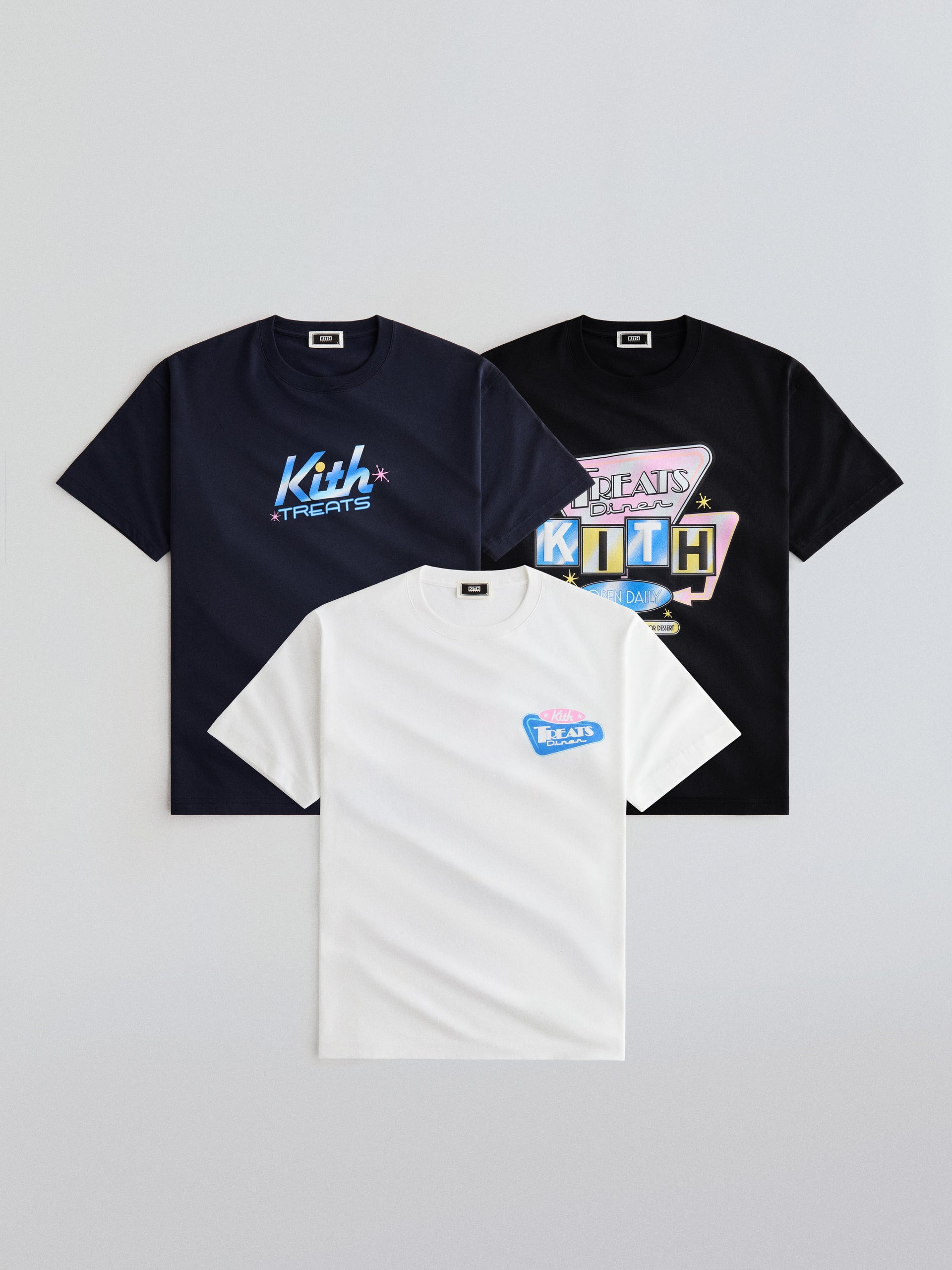 The Treats Diner capsule collection and limited time malted milkshakes will release Saturday, April 25th at all Kith Treats shops worldwide, online, and on the Kith App at 11AM in New York, London, Paris, Tokyo and Seoul timezones.