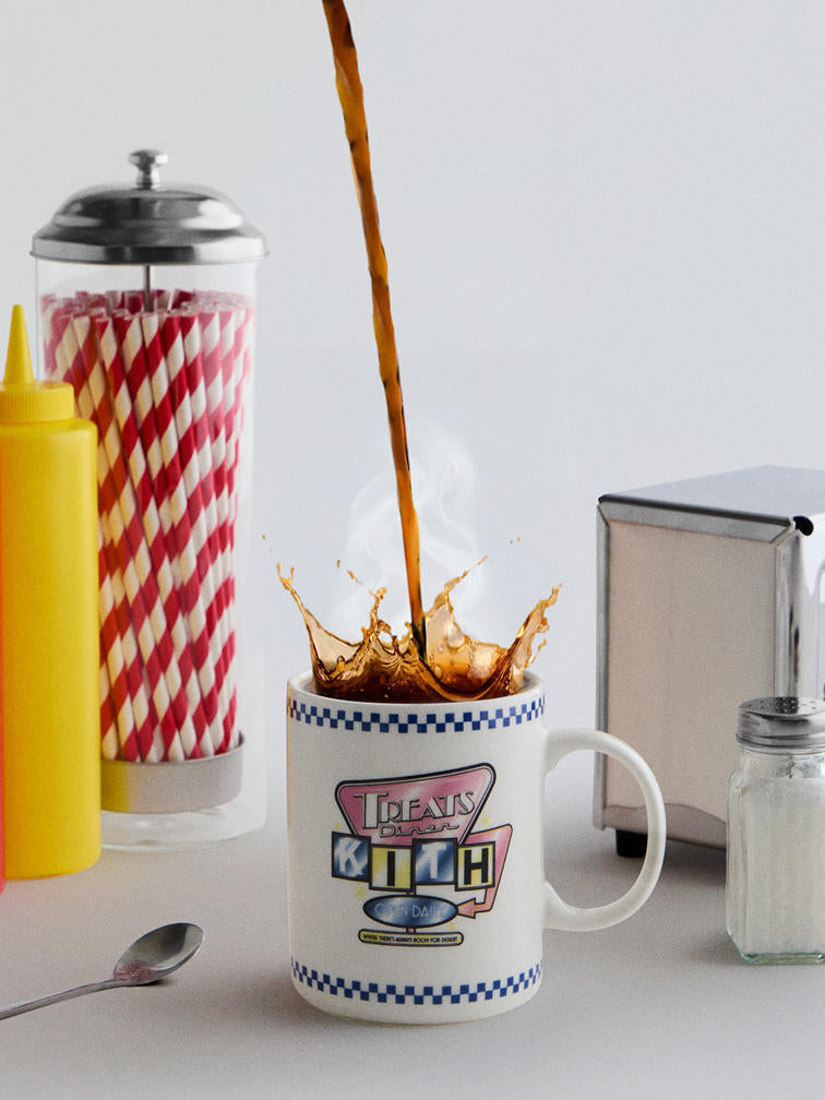 Kith Treats presents Treats Diner—a playful collection including graphic tees and a ceramic mug inspired by the timeless Americana pastime of creating memories over shared meals with friends and family. Drawing from the visual language of classic diners, the collection blends retro iconography, bold typography, and color blocked graphics that evoke nostalgia.