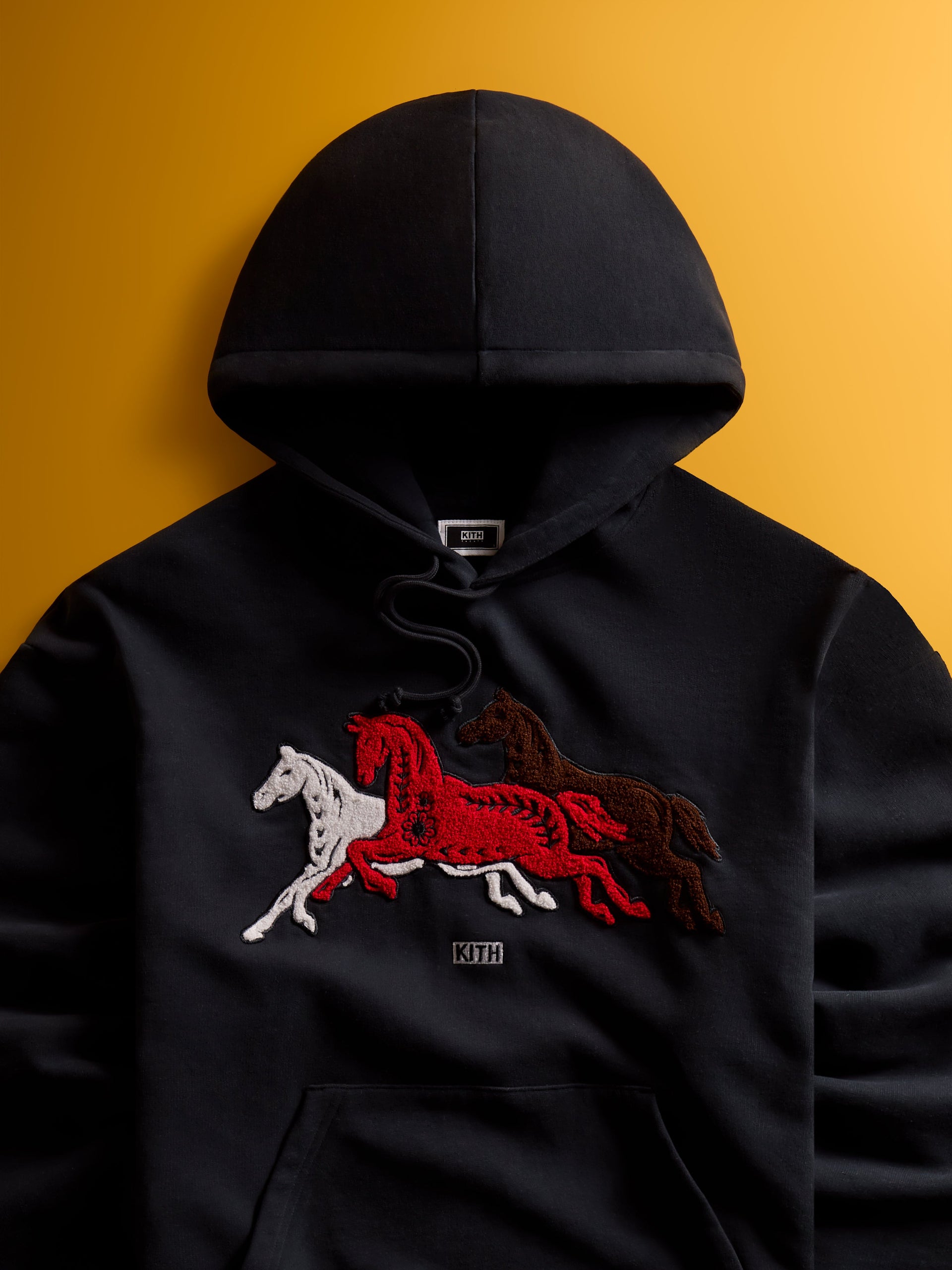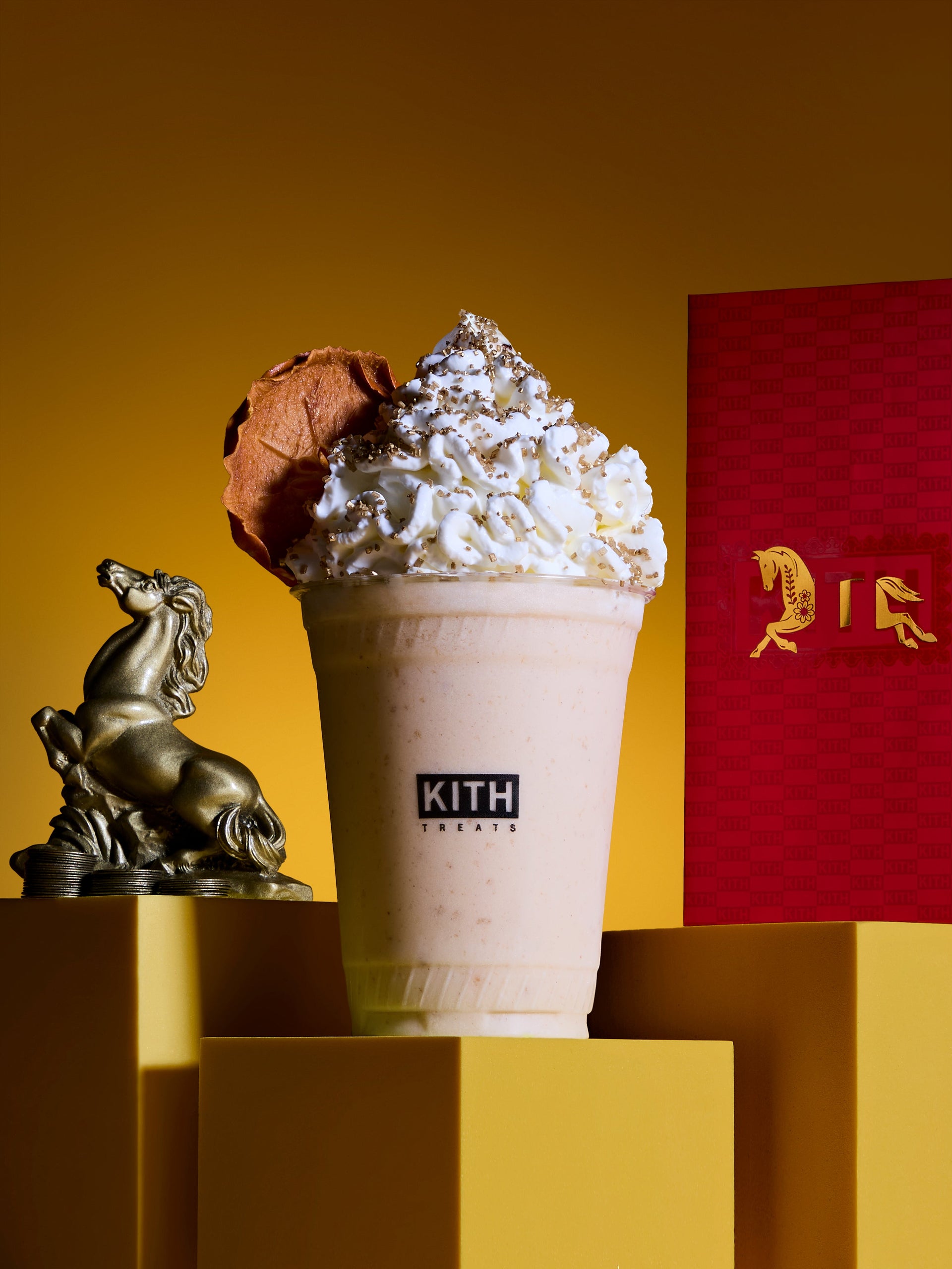 The Treats Lunar New Year capsule collection will serve as Kith’s upcoming Monday Program™, releasing Monday, 1/26 at all Kith Treats shops worldwide, online, and on the Kith App at 11AM in New York, London, and Paris timezones. Kith Treats’ Lunar New Year limited-time special, The Horse, will be available alongside the collection’s release at all Kith Treats locations worldwide.