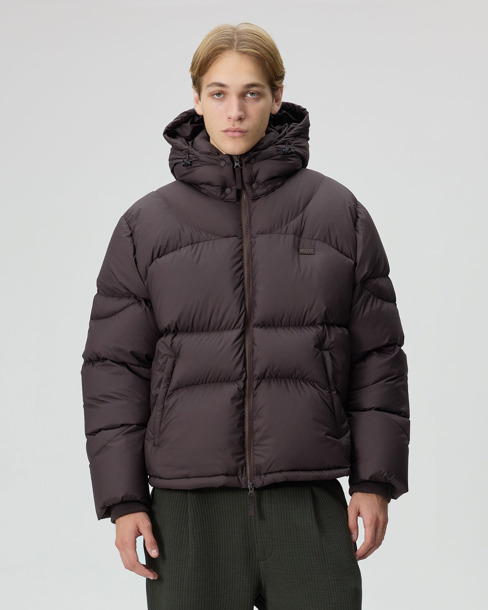 Puffer jackets from Kith are made for all-weather dressing, featuring styles like the Midi Puffer in wrinkle nylon and jersey iterations, and the Puffed Jase Denim Jacket, designed for seasonal layering. Each silhouette has features like goose down fill, bungee-adjustable hoods, and storm cuffs at the sleeves.