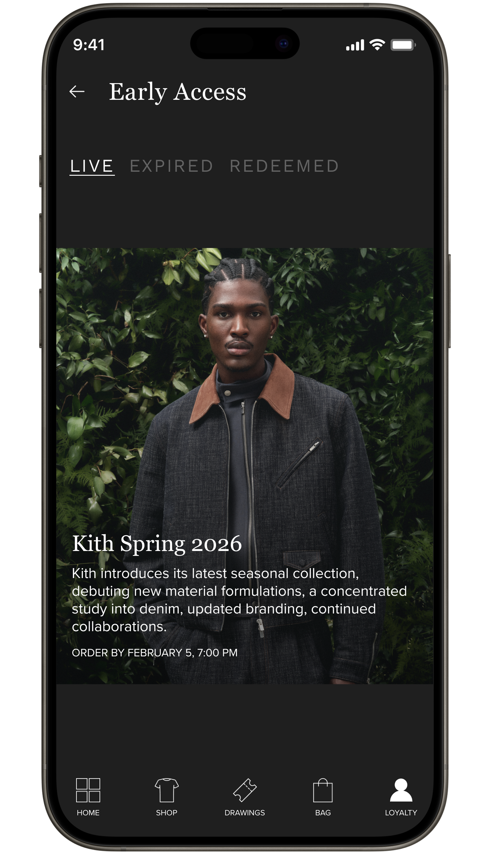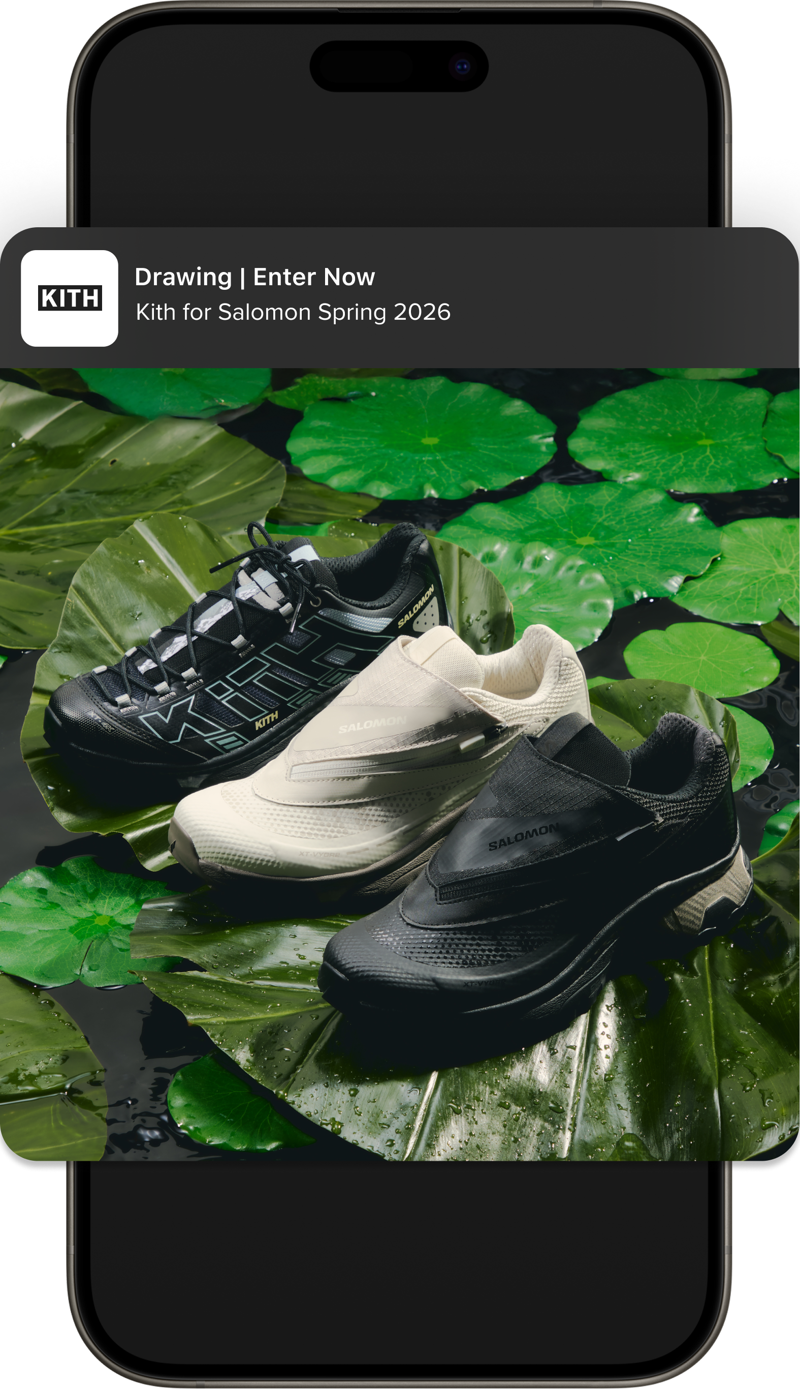 Enter exclusive drawings for a chance to secure anticipated footwear releases and attend Kith events. View all live and upcoming drawings in the Kith App.